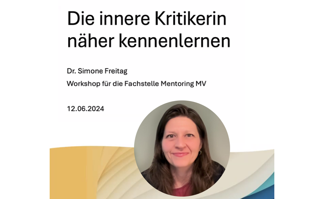 Simone Freitag führte als Trainerin mit vielen Impulsen und Expertise durch die Fragen, woher die innere Kritikerin kommen und wie ein Umgang mit ihr alternativ aussehen könnte. Tausend Dank an Simone Freitag für eine sehr strukturierte Aufbereitung des Themas! Das hat die eigene Sicht auf die innere Kritikerin vielfach erweitert. Und: Danke allen Mentees für das vertrauensvolle und gewinnbringende Teilen von Erfahrungen!