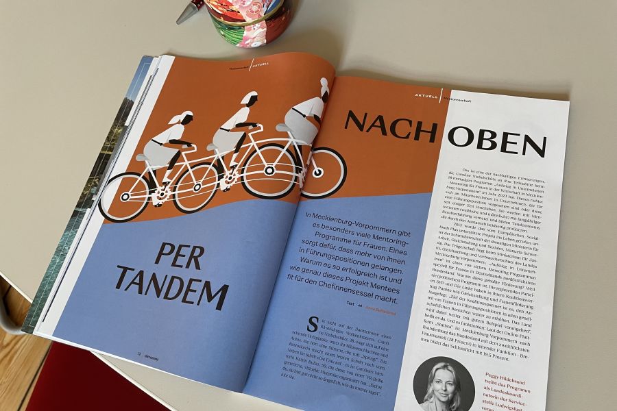 Das Mentoring-Programm Aufstieg in Unternehmen hat sich in der Zeitschrift Sheconomy (Ausgabe 2/2024) vorgestellt. Dabei wurde die herausragende Rolle des Programms für die Karriereförderung von Frauen in Mecklenburg-Vorpommern besonders hervorgehoben. Auch die Landeskoordiantorin Peggy Hildebrand sowie die ehemalige Mentee Caroline Niebelschütz kamen zu Wort und haben mit lesenswerten Eindrücken den Erfolg des Mentoringkonzepts in MV verdeutlicht. Wir freuen uns, dass Aufstieg in Unternehmen diese Plattform bekommen hat und für sich nutzen konnte!